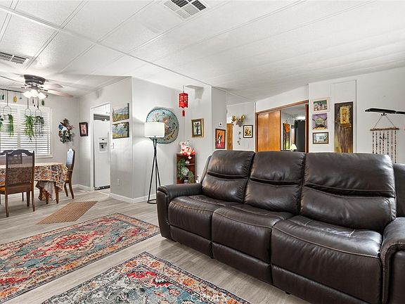 Welcome to this spacious and beautifully updated home located in the desirable Olive Hill Mobile Home Park. This home features a large, updated kitchen complete with a newer gas range, pot and pan drawers, beautiful countertops, a tile backsplash, and all appliances included. The layout offers two generous and separate living spaces, making it ideal for two people to live comfortably while enjoying their own private living and sleeping areas. The primary suite includes a walk-in closet and a spacious bathroom with a relaxing soaking tub and a separate shower. On the opposite end of the home, you’ll find a guest bedroom and bathroom that provide added privacy for visitors or roommates.