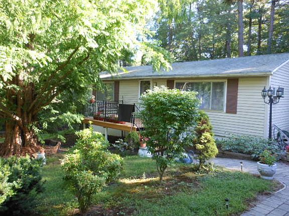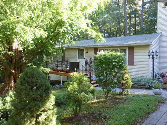 This cozy Ranch has been lovingly cared for over the years - from the landscaped yard w/pavers & pond area to the spotless interior. Recently updated EIK features new cabinets & counter tops, FDR w/hardwood floors, LR w/stone FP, 2 generous BRs, 2 recently updated BAs, additional guest BR w/private loft area & WIC, oil heat, large deck & vinyl siding. Perfect for YOU!