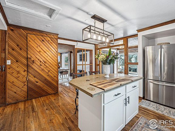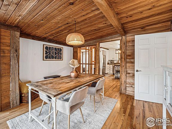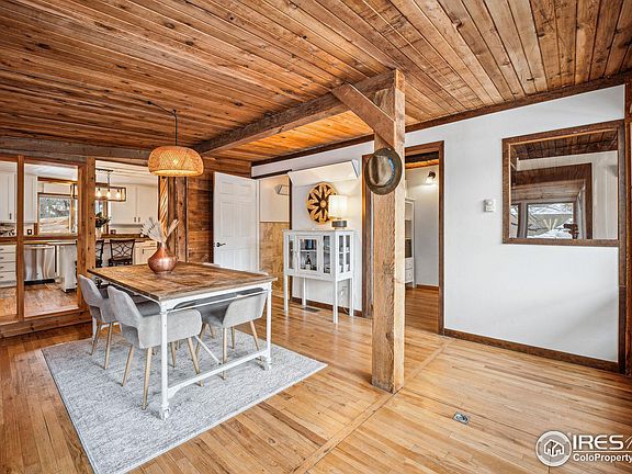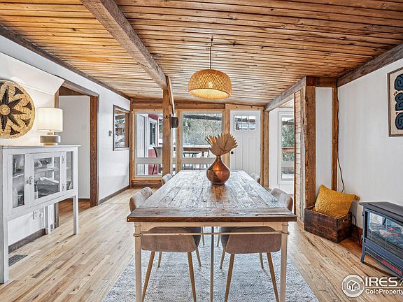 Haven of tranquility nestled in the heart of downtown Jamestown and backing onto the serene James Creek, this home offers the perfect retreat-whether as a full-time residence, weekend escape, or rental. Step onto the deck to take in breathtaking views of Porphyry Mountain and the calming and nurturing sounds of the creek, which can be heard from every room in the house-providing a peaceful, soothing backdrop and privacy w new fence. Down by the creek, a built-in firepit creates an amazing spot for both entertaining and relaxing, . The interior exudes a cozy, eclectic cabin charm, featuring partial wood-paneled ceilings, walls, and doors. Each room is adorned with windows offering unique views, seamlessly blending the beauty of the outdoors with the warmth of the home. Featuring hardwood floors throughout, boasts an updated kitchen with freshly painted cabinets, new hardware, newer appliances, concrete countertops, and lighting. The living room beckons you in with a charming wood stove gracious seating area. Dining area just off the kitchen is cozy and inviting, updated lighting and cozy electric stove, perfect for snowy candlelit dinners. Many rooms offer versatile potential, whether as office space, bedrooms, a home gym, cozy reading corners, and even offers a loft nook perfect for meditation or relaxation. Primary bedroom awaits upstairs, nestled in the "bird's nest" of the home. Newer exterior paint, complemented by custom ghost wood accents, gives the home a luxurious beach barn aesthetic. The Merc, a beloved community hub, is just a short stroll away and serves delicious food Wednesday through Sunday, live music Fridays in the summer. Abundance of nearby trails and National Forest for hiking and exploring.Conveniently located just 20 minutes from Boulder and 15 minutes from Brainard Lake, this property combines small-town charm with accessibility. This home is ideal for gatherings or solitude, whether enjoying the cozy interior or the beautiful outdoor spaces!