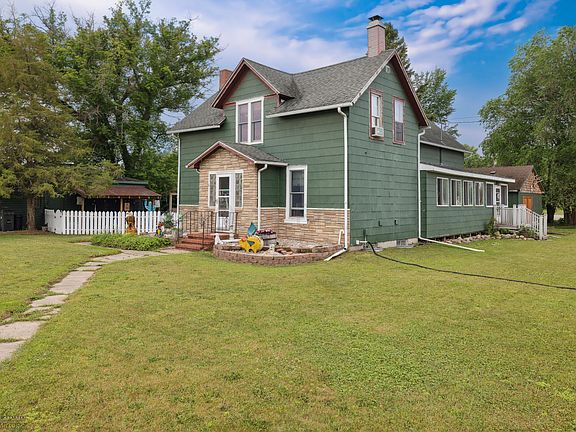 This one-of-a-kind house has it all! Starting outside, there's a 20x26 heated shop, a 24x29 garage, a wash area, an outdoor cook house, 8x16 shed, firepit area, and a deck, all in an entirely fenced yard with no direct neighbors. Inside is a wood burning fireplace, a den or 5th bedroom with a murphy bed and locked hidden storage behind a bookshelf, a large formal dining room, four season and a three season porches, main floor laundry, an office, ample bedrooms, and a full bathroom on every floor. This home also has history as it was once the old Western Hotel back in the early 1900's and was where railroad workers would stay when they were stationed in Sabin. There's even still the back stairs that were used by the hotel staff!