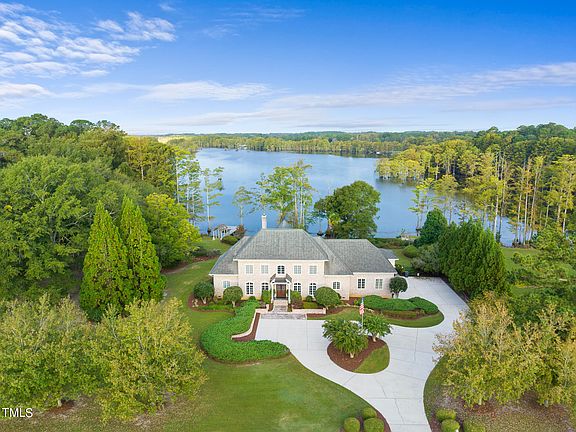 Welcome to a Once in a Lifetime opportunity to own a truly magnificent LakeFront property! Nestled on a sprawling 2.5-acre lot, this All Brick, Elegant, and Luxurious home boasts almost 5000 heated square feet, offering a lifestyle of opulence and serenity. With a 32' Pier and Boat Dock, this residence provides direct access to the breathtaking lake views that surround the property. As you step into this masterpiece, the grandeur is immediately evident in the 2 Story Grand Entry Foyer. Your journey begins with a graceful encounter with a Huge Dining Room and a Library/Office adorned with exquisite built-ins, setting the tone for elegance and sophistication. The expansive Family Room features a coffered ceiling, built-ins, and a cozy fireplace, creating a warm and inviting atmosphere. The heart of this home is the Chef's Island Kitchen, a culinary haven equipped with a 5 Burner CookTop, Vented Hood, Bosch Double Ovens, and a Built-in Refrigerator. Imagine preparing meals while overlooking the sunny breakfast area and enjoying breathtaking views of the lake. The First Floor Owner's Suite is a haven of tranquility, with its spa-like ambiance and panoramic lake views. The large tile walk-in, 2-head shower, make-up vanity, and California Walk-in Closet ensure both luxury and functionality. Upstairs, discover two Bedroom Suites featuring solar tubes, a 4th Bedroom or Office, and a large Bonus Room that overlooks the gorgeous lake views. Additional storage or expansion opportunities await on both the 2nd and 3rd floors. The outdoor living spaces are equally impressive, with a Large Covered Back Porch, a Covered Sitting Area off the Kitchen, and a Grand Patio that invites you to entertain, grill out, and savor the Lake Views and Beautiful Sunsets. The property boasts an Irrigation System, Grand Circle Driveway, extra parking pads, and a Rose Garden. With the potential to subdivide, this residence offers limitless possibilities. Convenience meets luxury, as this home is just minutes away from I-95 and provides easy access to 40, ensuring a seamless commute to RTP. UNC Hospital in Smithfield and the Outlet Malls are within a short drive, while the Johnston County Country Club, only 5 minutes away, offers golfing, pool, clubhouse, and snack bars for your leisure. Don't miss this rare opportunity to experience a lifestyle of unparalleled luxury, sophistication, and natural beauty. Schedule your private tour today and make this lakefront dream home yours!