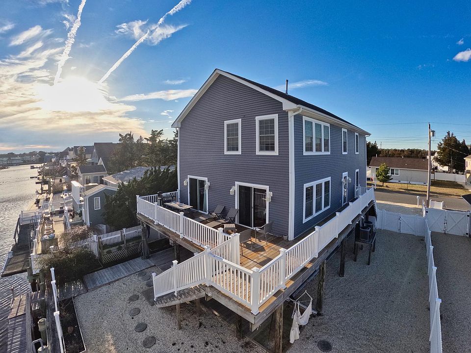 Beautiful waterfront single family shore home located in the desirable community of Tuckerton Beach. This This coastal home features non-restricted boat access onto the canal. This property offers 4 bedrooms and 3 full baths. The spacious open floor plan is a great place to relax and enjoy the breathtaking views every day. The main floor boasts an updated gourmet kitchen, with its own breakfast area, oversized family room with dual sliding glass doors, formal dining room, a large entry foyer and a full main floor bathroom. new flooring throughout the first level. Cape cod shutters add to the charm of this lovely shore property. The second level has 4 bedrooms, 2 full bathrooms and a convenient laundry area. The primary bedroom has a spacious walk-in closet and its own en suite featuring a walk-in shower and soaking tub. The ground level garage offers access to your own private bulkhead and dock. Move in ready! Don't miss the opportunity to see this wonderful shore retreat.