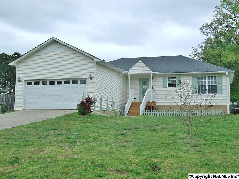 5 Minutes to Lake Guntersville, Neat, Neat, Neat is this 9-year-old home featuring European style kitchen, with hardwood floors, vaulted ceiling in living and dining areas, open floor plan, 3 bedrooms, 2 bath, utility room and 2 car attached garage, fenced backyard w/ fruit trees, grape and blackberry vines. PR6370