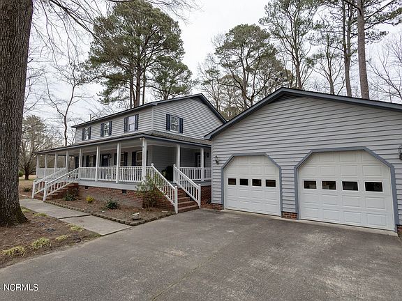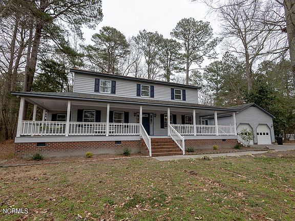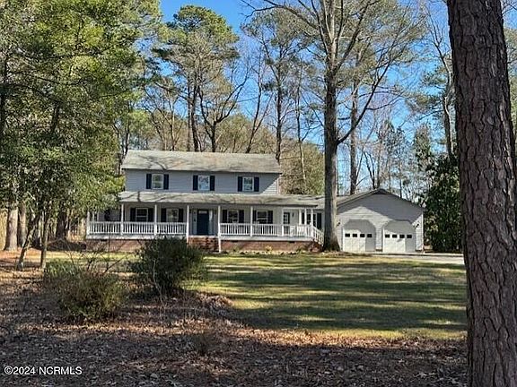 This 5 bedroom, 3.5 bath home sits just outside of Ahoskie on a 1.25 acre lot in Matheson Woods. The home has the perfect balance of style, functionality, and comfort, creating a welcoming atmosphere. The wrap around front porch is the perfect spot to sit and enjoy the neighborhood. The front door brings you into the foyer and the spacious living room. This opens to the well-appointed eat in kitchen, making entertaining easy and fun. The kitchen includes a large center island, updated appliances, granite countertops and ample cabinet and counter space. The nearby dining room provides additional space to entertain. There is a conveniently located dedicated office with a wall of built in shelving. The large first floor primary bedroom includes a walk in closet and a luxurious private bath with a walk in shower and double sinks. There are four additional roomy bedrooms upstairs that offer privacy and comfort, including a second bedroom suite with a walk in closet and private full bath. There is a third full bath conveniently located near the remaining three bedrooms.
