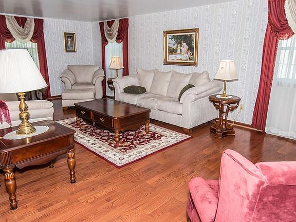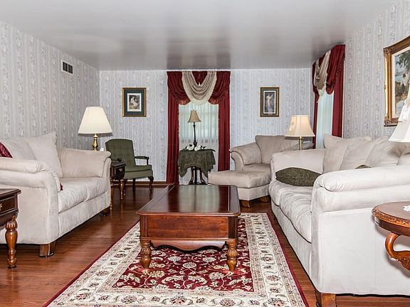 This 4 bedroom, 2.5 bathroom, 1st and lower level laundry hook-up, and a 2.5 car garage home is located on a corner lot. Kitchen has numerous cabinets (some pull out), stainless steel appliances, an amazing pantry plus a broom closet, an eat at bar and easy to maintain tile flooring. Adjacent is the beautiful sun room with built in cabinets, brick flooring, several nice sized windows and a sliding glass door that lead out to the brick patio. Tile flooring and a brick fire place with electric logs accent the family room. Gorgeous entrance area with hard wood flooring. To the right of the entrance is the formal living room with hard wood flooring and to the left is the formal dining room. The nice sized master bedroom has a private full bathroom. A 12x22 recreation room with built in cabinet