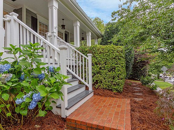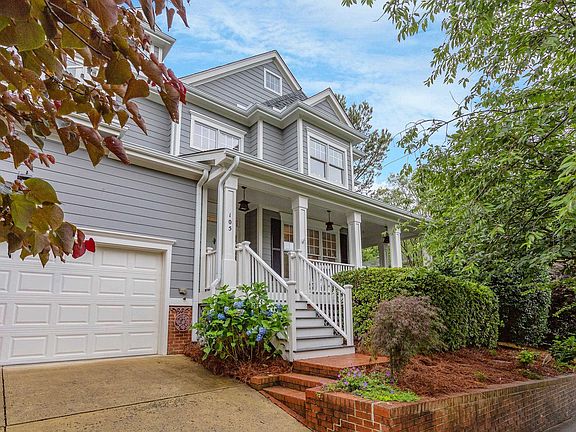 Soar like a lark in this happy Larkspur home. Open spaces, lots-of-light and fresh, stylish interior. Dreamy touches include oak floors, mosaic tile fireplace, custom built-ins and bespoke millwork. A soaring, beamed ceiling adds wow to the open kitchen, family and breakfast rooms. White cabinets, miles of new luxe granite counters + tile splash and stainless appliances give the kitchen a sunny-side-up vibe. Ease into work or homework from the first or second level flex rooms. A suite retreat, the spacious primary bedroom hosts a balcony, trey-ceiling, muted tranquility in the tile bathroom and two walk-in closets. Main and secondary bedrooms are all ensuite with walk-in closets. The third-floor haven offers two rooms, built-in shelving and a bath. Easy-breezy lounging awaits on the screen porch overlooking the private rear garden with a lovely lawn, new paver patios and lush landscape. Count on adventure at the swim club, play park and neighborhood basketball hoop. Easy connections are fostered by neighborhood friendliness. Less than 15 minutes to UNC and Duke. Life is magnificent on Maywood.