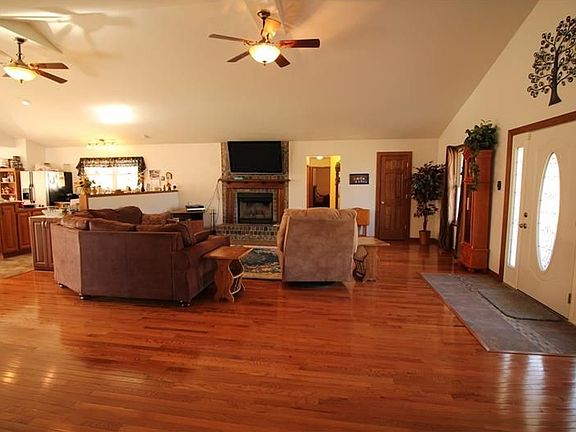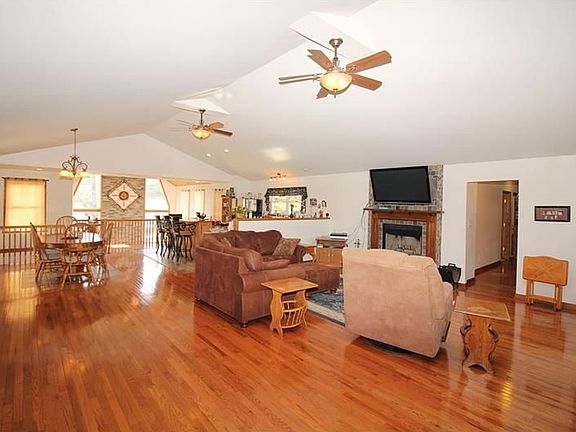 Custom Built Stone Ranch w/ Contemporary Open Floor Plan just 11 years young! Incredible Great Room w/ Cathedral Ceilings, Gorgeous Oak Floors & Woodwork plus plenty of Windows calling in the Natural Light! Granite Counter Tops & Plenty of Wood Cabinets in Gourmet Kitchen w/ Island housing Stove & Breakfast Bar. Sliding Glass Doors off Dining Room lead onto HUGE Back Deck. Master Suite sits on opposite end of house from other 3 bedrooms and offers 2 Sliding Glass Doors to same Deck, 2 HUGE Walk-in Closets & Master Bathroom w/ Separate Shower Stall & Tub! Incredible 2 Story Family Room w/ Soaring Wood Ceilings, Stone Log Burning Fireplace highlighted w/ Spectacular Windows on both sides. Wetbar in Game Room w/ Ceramic Tile Floors. Additional 5th Bedroom in Lower Level w/ Full Bathroom featuring a Urinal & Toilet plus separate Den w/ HUGE Walk-in Closet. AWESOME Inground Pool w/ Pool House & Cabana area. 2 Separate 2 Car Garages! HOME WARRANTY INCLUDED! TOO MUCH TO MENTION... COME VISIT!