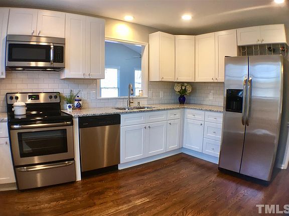 Completely renovated w/custom features.Stylish design in heart of Cary. Must-see!Brand new hardwood floors installed throughout 1st floor. New windows, paint &carpet.Family rm is sunny w/skylights & vaulted ceiling. Living rm-wood burning fp & custom office.Beautiful kitchen w/new cabinets, granite counter tops, tile backsplash & SS appliances.Master suite has his/her closets & updated BA.Large fenced wooded lot on culdesac.Greenway access walk to park,tennis, BB courts, baseball field & com pool. No HOA!