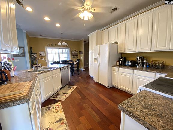 - RoomKitchenFeatures: Recessed Lighting, Eat-in Kitchen, Counter Tops-Formica, Floors-Hardwood, Cabinets-Painted