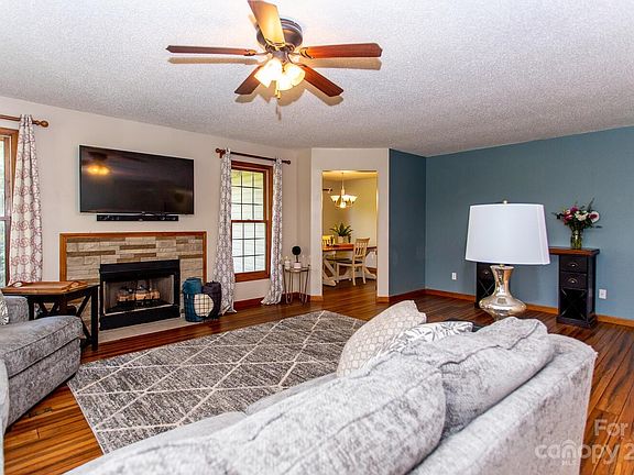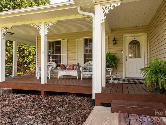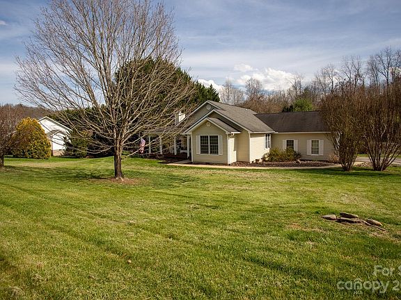 The relaxing front porch makes this property so inviting. Featuring a spacious living room with gas logs, and an alcove area for a desk or reading area. The eat in kitchen is bright white and features island seating, a breakfast nook area and stainless steel appliances. Separate dining room for entertaining. Primary bedroom has a walk in closet an ensuite bath with a separate shower and jet tub. Beautiful hardwood floors with a spacious feel to this home . Nice sized laundry /mud room off the large garage that has abundance storage. The side deck is great for outdoor dining with grill space. This home is situated in a small and quaint neighborhood. A creek side large level backyard that would be great for entertaining, playing sports or gardening. Bonus storage with a 12x16 outbuilding. Located only 5 minutes from the Elementary, Intermediate and High schools, as well as only 20 minutes to Downtown Asheville or Weaverville for convenient shopping and a multitude of dining options.