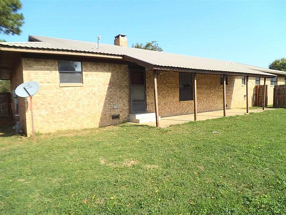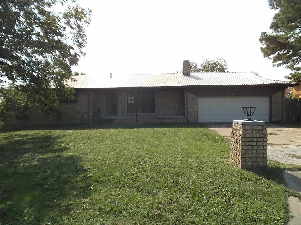This 4 bedroom and 2 bath home on quite street needs some TLC. Built in 1982, has 2 car garage, brick and metal roof. Large yard on corner lot. Covered patio. Lots of kitchen cabinets. "AS IS"