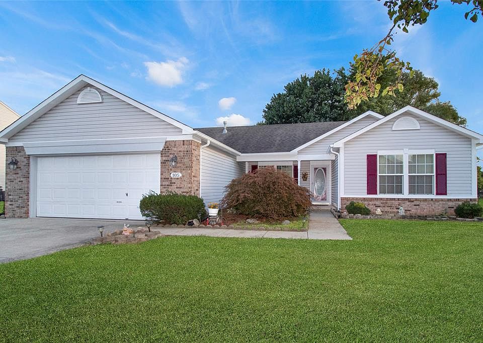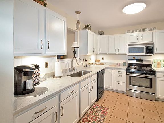 This updated, pristine split floorplan ranch home is waiting for you. This home has a brand new Kitchen featuring new white cabinets, new quartz countertops, stainless steel appliances with gas range and a pass through opening to the Great Room. New vinyl plank flooring and fresh paint throughout most of the home. Flex room could be used as an office, dining room, or whatever you would need. Master Bedroom with spacious full bath and large walk in closet. Attached Garage with convenient service door, storage cabinets, and an electric heater. Sit back and watch the sunsets on your deck in the fully fenced backyard with an additional large concrete patio, established trees and Mini barn for extra storage.