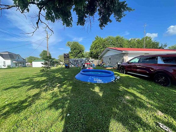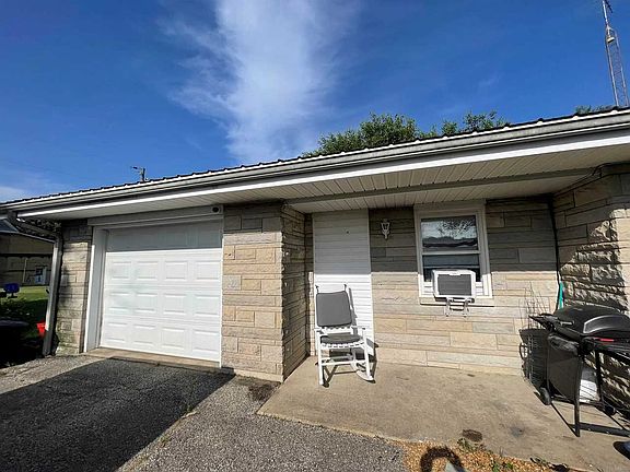 This Lovely Bedford Stone 3 Bed 1.5 bath ranch home is prefect for a first time home buyer, or a retiree looking to downsize. The home boasts a maintenance free exterior with metal roof. The large living room with new picture window, leads to an open kitchen dining area with some appliances included. Just down the hall past the half bath, is a bonus room that is currently being used as a 4th bedroom. Across the hall is the laundry room with folding table and deep sink. At the other end of the home are 3 bedrooms and a full bath. The home has beautiful hardwood floors, 1 car attached garage, outbuilding for storage, and fully fenced back yard. Sale includes freezer, washer dryer, range hood, microwave and garbage disposal, swing set and sand box. At this price it wont last long!