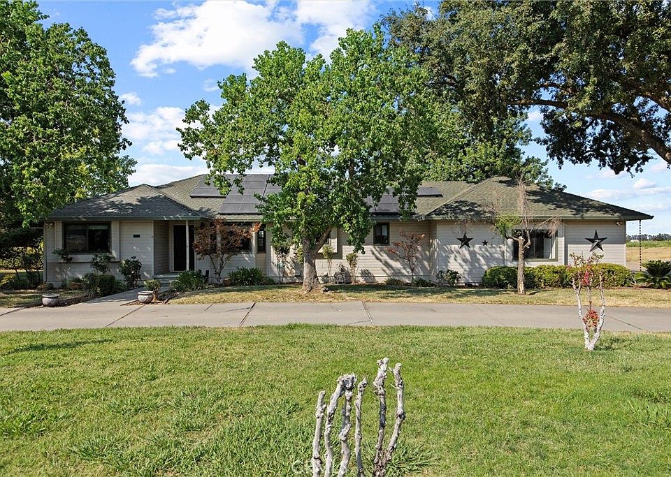 Discover a rare blend of convenience and tranquility Just Steps from Downtown Orland – 18+ Acres of Country Charm with Stony Creek access. (Two Parcels) With irrigated pasture through the Orland Water District, seasonal ponds, additional seasonal creeks meandering through the land, this property offers the perfect mix of natural beauty and function. Step inside and be greeted by vaulted cedar-lined ceilings and an open-concept floor plan that fills the home with warmth and light. The living room and master suite both feature sliding glass doors that open to breathtaking views, hot tub, multiple decks, including a rooftop deck—perfect for relaxing evenings or entertaining under the stars.The home showcases top-of-the-line upgrades, including gleaming engineered hardwood floors, plush bedroom carpet, a spacious kitchen, and a huge laundry room and an attached 2 car garage. Comfort is guaranteed year-round with a newer central heating and air system and solar (PPA). Outside, the amenities continue: 50’ x 42’ hangar/shop with sliding barn doors and a separate enclosed area for toys and tools, RV hookup for guests or extended stays, Irrigated, fenced, and partial cross-fenced pasture with pipe fencing, Sand riding arena for horse lovers and Beautifully landscaped grounds surrounding the the home. Additional development potential may be possible, if you don't need all the property sell the smaller parcel. This property truly has it all—privacy, function, and natural beauty—while being just moments from town. Whether you’re seeking a country retreat, an equestrian haven, or simply a home with unmatched outdoor living, this Orland gem delivers. Lot size, sqft, year built, and all information taken from county record and seller. Buyer to verify all information to satisfaction.