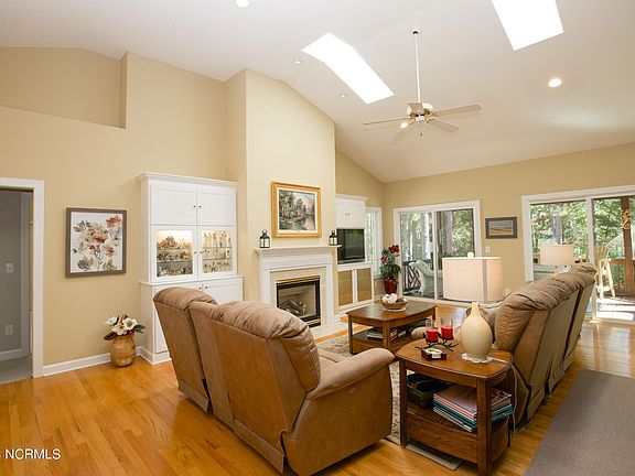 Meticulously maintained 3-4BR/3BA brick ranch with lower-level walkout/daylight basement with in-law suite. Main level has vaulted great room and kitchen, gas log fireplace, formal dining; kitchen with bar, double ovens (one is convection), dual use microwave and pantry. KitchenAid designer appliances. Home was 1999's Judges choice award winner, built by Danny Adams. Recent improvements include new paint, kitchenette with sink added to lower level, Kitchen quartz and appliances replaced in 2015, wrought iron-look fenced rear yard, new heat pump in 2011 and 5-ton unit had coil replaced in 2020, new hot water heaters in 2019 and 2020, newer Trex style decking, added new LED recessed lights, added built-ins in living room and gutter guards. Other features: laundry room with sink and ample cabinets and folding space, spacious screened porch, handicap accessible ramp in garage, deck and lower-level patio/porch and gutter guards. Master suite has trayed ceiling, 2 sinks/vanities plus makeup vanity, shower, garden tub and spacious walk-in closet. Split plan, hardwood floors, new LVP on lower level. Note hanging TV conveys with the home. Seller had roof serviced and inspected 4 months ago and had some boots and a few shingles replaced. 400-amp service in home. Gated Seven Lakes West offers a pristine lake for swimming, fishing, boating, and water sports; a marina, picnic area, beach area, storage for boats and RVs (storage fees apply), playgrounds, basketball court, pickleball court, pool, clubhouse, and more all for $1826 per year. Note there are no town taxes. Tax records list as a 4BR home, septic permit says 3 BR's.