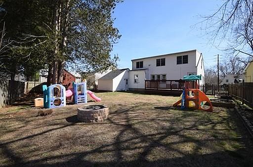 "First Home" Fever? Fantastic Cape featuring many updates throughout & a great fenced in back yard for outdoor entertainment! First flr features bright & sunny living rm w/ brick hearth fireplace for those chilly nights & gleaming hdwd flrs, opening to formal dining rm w/ beautiful hdwd flrs, fully renovated kitchen w/ breakfast bar seating, appliances included & exterior access to deck area, full bth, guest bdrm w/ hdwd flrs & adorable home office area. The second flr is a 2003 addition to this home (as per seller) featuring a spacious master suite w/ walk in closet, generous full bth w/ corian counter tops, great seating area or potential space for jacuzzi, built in's and great picture window, two additional guest bedrooms & an upstairs loft overlooking home office w/ skylight - just perfect for a reading area or quiet space! Lower level is just wonderful, for not being finished it's carpeted, neat & clean! Could use as additional space. Great screened in front porch a bonus!