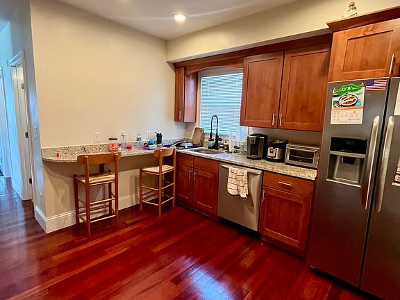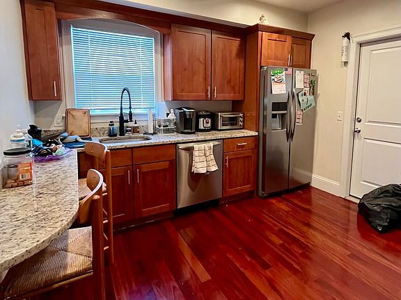 Top of the line 4 bed 2 bath available for rent in Brighton, steps to rapidly developing Boston Landing. This modern apartment features central air, updated kitchen and baths, laundry, ample sized bedrooms and more. Kitchen features granite countertops & stainless steel appliances. The living space has hardwood floors and high ceilings with flexible layout options. The apartment has a spacious and an airy feel to it. All bedrooms have ceiling fans, carpet and good sized closets. Additional storage and laundry machines in basement. Shared patio & bbq area for outdoor hangs. Driveway parking for 2 cars included plus ample street parking. Tremendous location walking distance to easy MBTA access into South Station, Copley and Fenway as well as new Stop & Shop supermarket. Cats ok, 1 small dog considered. 1 year or to Aug 31, 2025 First, last, $100 cleaning deposit per person and broker fee (negotiable based on move-in terms)