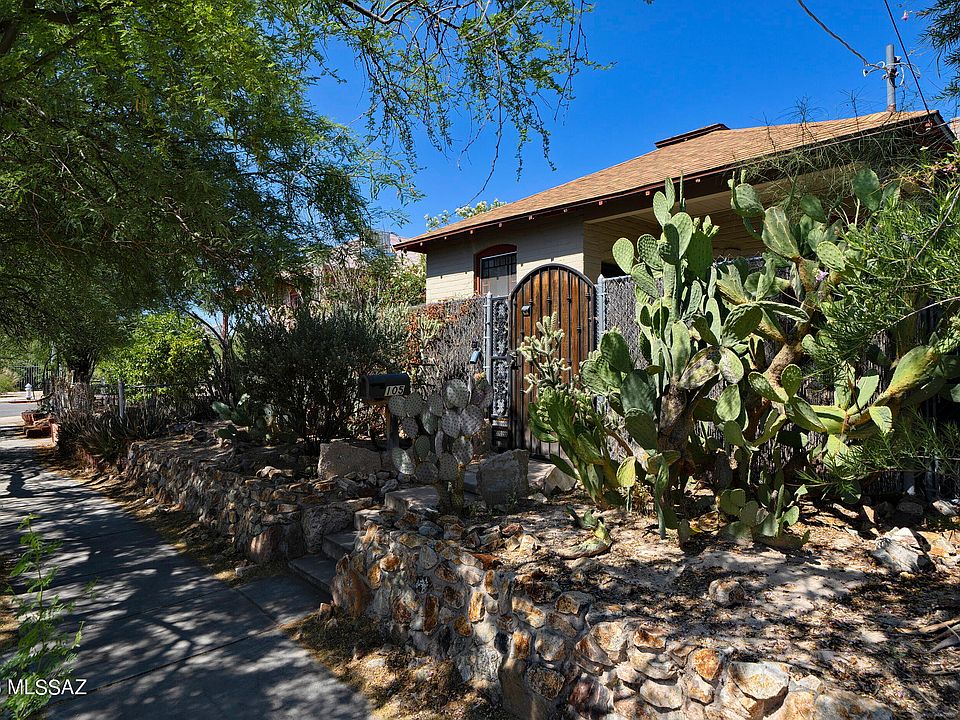 The seller shall entertain offers between $325,000 - $350,000. Cozy 2 bedroom / 1 bath bungalow just 3 blocks from U of A in historic Iron Horse Neighborhood. Great walkable area - just steps from historic 4th Avenue and downtown shops, restaurants and nightlife. Kitchen has granite counter tops. Stamped tin ceiling, wood and tile floors. Fenced yard, and front courtyard. Storage building in back. Newer Mini-split HVAC in living room. This home would make a great vacation rental, University housing rental/home, or just a great spot for someone that wants to be within walking distance to so many downtown and University spots. NO HOA !!! Don't miss out on this great find!
