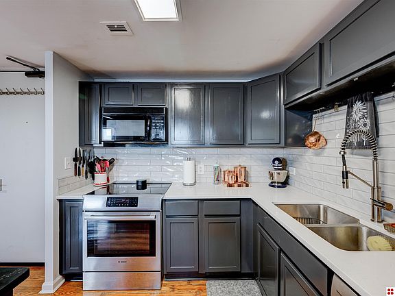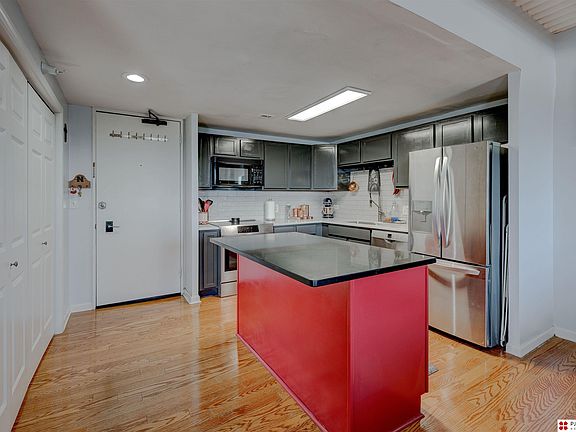 Modern midtown condo is ready for you to call it HOME with east facing Downtown Omaha views. One-bed, one-bath unit includes updated backsplash, painted cabinets, granite countertops in the kitchen and stainless-steel appliances. Kitchen, living and dining area with wood laminate floors and large windows are all open so it makes for great entertain. Primary bedroom with unique concrete floors and full bath complete the condo Laundry conveniently located on each floor is included in the HOA fee. Rooftop patio on the east side of the building. Patio and gym can be accessed on the 2nd floor. Assigned parking spot is located in the lower-level garage. Conveniently located on the north side of Dodge street across from Midtown Crossing this condo is close to restaurants, shopping, Wohlner's Grocery. Make commuting a breeze with easy access onto Dodge Street and close proximity to the interstate and Creighton. Don't miss your opportunity to call midtown HOME!