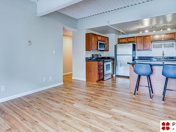 West facing corner midtown condo is ready for you to call home. Lovely update 2 bed, 2 bath unit. Lovely kitchen with wood colored cabinets, granite countertops, island and stainless-steel appliances. Kitchen, living room and hallway with wood laminate floors. Primary bedroom with carpet, Ikea closet system and updated 1/2 bath. 2nd bed with carpet and updated full bath complete the condo. New windows overlooking the Omaha skyline. Laundry conveniently located on each floor is included in the HOA fee. Rooftop patio on the east side of the building. Patio and gym can be accessed on the 2nd floor. 2 assigned parking spots are located in the lower-level garage. Conveniently located on the north side of Dodge street across from Midtown Crossing this condo is close to restaurants, shopping, Wohlner's Grocery. Make commuting a breeze with easy access onto Dodge Street and close proximity to the interstate and Creighton. Don't miss your opportunity to call midtown HOME!