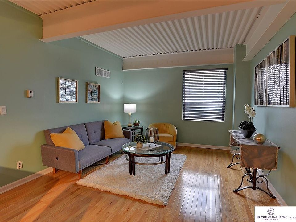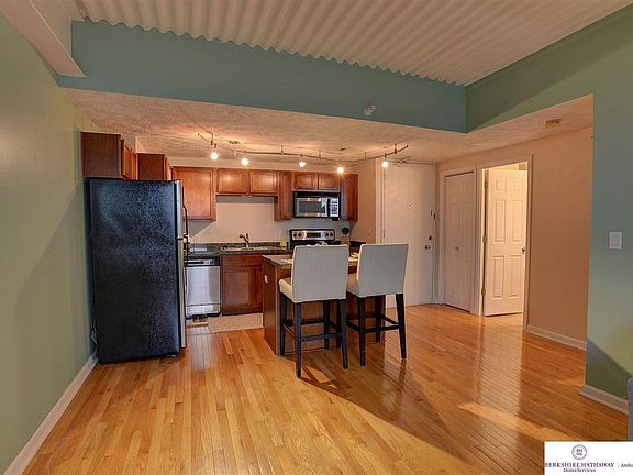 Priceless view from this east facing condo on 7th floor. Conveniently located across from Midtown Crossing Development and just blocks from Creighton. Condo features wood floors, cherry cabinets, black granite counter tops, island and stainless steel appliances. Unit includes secure 2 car tandem parking space in underground garage, rooftop deck access and work out facility. Shuttle to Creighton and Bergan great for college students.