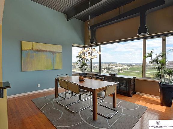 Feel like you are on top of the world with these amazing panoramic views of the downtown skyline and fireworks display from this rare east facing Park Plaza Penthouse suite. Spacious open floor plan offers soaring ceilings, abundance of windows, and beautiful shiny hardwood floors. Kitchen has maple cabinets, granite counter tops, pantry, and stainless-steel appliances.. 2 bed 2 bath 2 car top floor unit with extra storage. Master bed boasts vaulted ceiling walk in closet and 3/4 bath. 2 Garage stalls in secure underground parking garage. Intercom security system. All appliances stay including the full-size washer and dryer in the unit. Community kitchen, shared roof top deck with grill, tables and chairs. Easy access to Dodge Street, Interstate, Midtown Crossing, Blackstone District and Downtown. High end blinds throughout. 24 Hour fitness facility. Shuttle to Creighton University and Bergen Mercy.