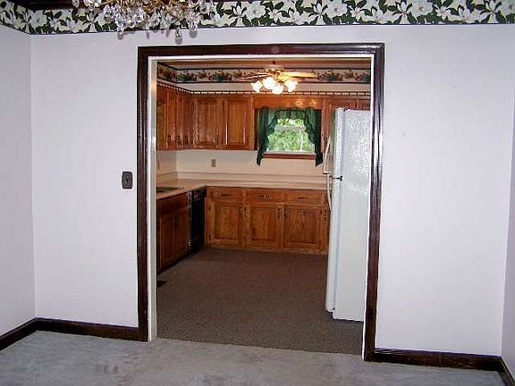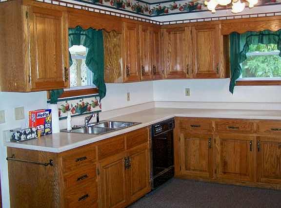 PRICE REDUCED!!! Cottage Charm-2 Br., 1 Ba., large country kitchen with custom oak cabinets, din.rm., large liv. rm. with frpl., main level. util. rm. Bsmt. with lots of shelving. Replacement windows, vinyl siding and large covered patio amoung the extras.