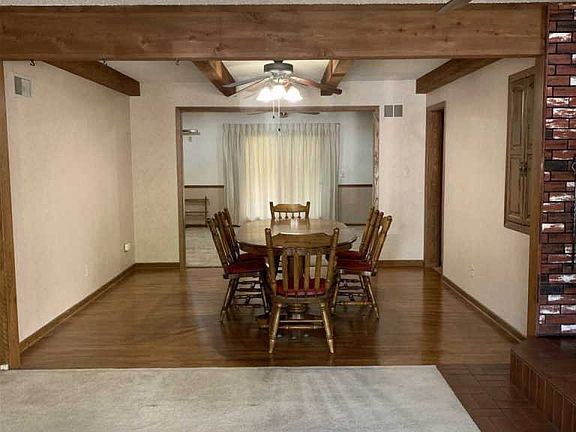 Colwich gem! Wonderful, one owner, sprawling ranch home with many extra features. Walk in to the large formal living room with a wood burning stove. Two dining rooms, or one dining area could be used for extended family room area or office space. An addition to the house was completed in '85 and includes a large family room with built-ins and a wet bar, a big bedroom and a mudroom/full bath off the garage. The garage is one car, but oversized. Beautiful galley kitchen with fabulous solid wood cabinets and lots of countertop space, tile flooring and pull outs in the cabinets. There is no space wasted in this house. Any extra space that was available has well-designed built-ins. Check out the built-in behind the front door. Master bedroom has a half bath with a full bath in the hall. In the basement you'll find a large family room and a large non-conforming bedroom with another full finished bathroom with shower. The utility room is not finished, but has a tile floor. Storage space galore with built-in shelving and a workbench. Fully fenced yard, with a storage shed and covered brick patio in the back. There is a small screened in area as well. Before the siding was put on, owner had extra insulation installed. This is a unique find that has had meticulous care.