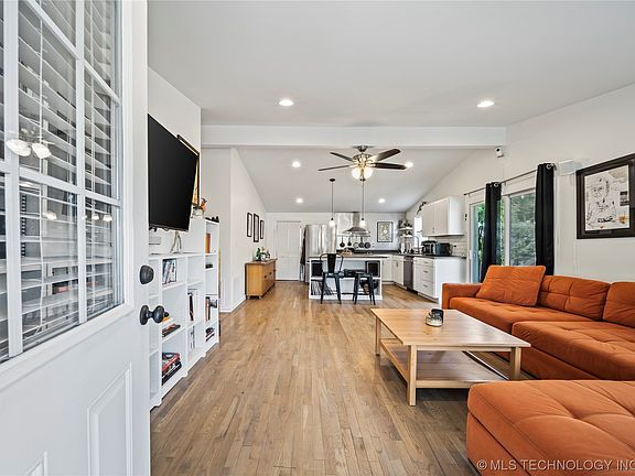 Adorable Remodeled Bungalow features open concept living with beautiful hardwood floors, kitchen island, 2 beds, 1.5 baths and inside laundry. Primary bedroom has private full bath, both bedrooms have spacious walk in closets. Peaceful backyard with new wood deck, detached garage, nice sized lot. 2019 Roof, 2021 HVAC & Air Ducts, 2023 Tankless Hot Water Heater. City convenience with all the country feels!
