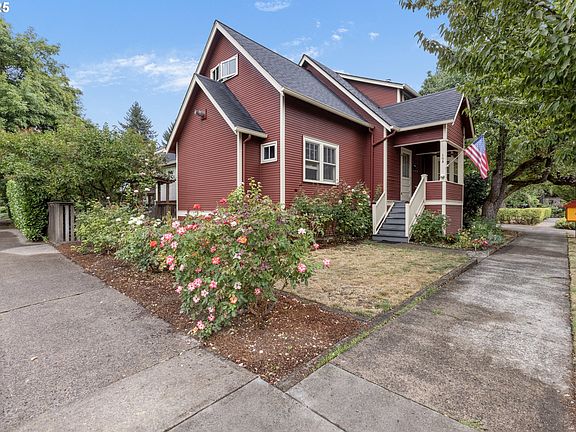 Beautiful farmhouse with an ADU, full of light and charm. The property includes a second legal address—871 Cheshire Ave—for the 1 bedroom side of duplex/ADU. Tucked into a quiet, friendly neighborhood just one block from the Willamette river path and half a block from a sweet park, this home offers a rare blend of timeless character and everyday comfort. Owen Rose Garden is only a few blocks away, and downtown is close to hand.Surrounded by mature landscaping, the property features berries, figs, grapes, apple and cherry trees, with more than 50 rose bushes. A laurel hedge and block wall provide privacy, while a garden bounded by a greenhouse and unique storage space, adds both beauty and function. Outdoor spaces have been designed for entertaining, gardening, and quiet enjoyment.Inside, natural light emphasizes oak and fir floors, custom built-ins, and a cozy gas fireplace. The kitchen opens to a breakfast nook with built-in benches, and the spacious dining room easily hosts large gatherings. French doors connect the living room to a screened porch, and an enclosed porch provides pantry and storage space.Upstairs, the primary bedroom offers an airy retreat with skylights and an attached office or hobby room. A tiled walk-in shower creates the feel of a private spa. The 768 sqft daylight basement offers abundant outlets, a pantry/wine cellar, a workshop, and plenty of space for crafts and hobbies.The 320 sq. ft. ADU, with its own private entrance and no shared interior walls, lives larger than its footprint—ideal for guests, extended family, or rental income. Lovingly maintained for over four decades, the home blends history with thoughtful updates, and earthquake retrofitting.Surrounded by nature, yet close to everything, this urban retreat is ready for its next chapter.