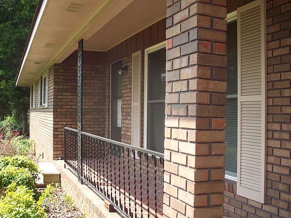 All brick 3BR, 2BA ranch on lovely large lot with private back yard. Storage building could make a man cave. New oven, large laundry room, carpet is new but living room, hall, and bedrooms have hardwood under carpet. Has fairly new roof. Double carport, back porch, master br has built-in shelves and storage. Breakfast bar. New flooring in kitchen and dining room.