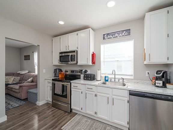 You're going to want to see this affordable, move in ready and completely updated home offering a bright and beautiful living room, kitchen with white cabinetry & stainless steel appliances, 2 bedrooms, a full bath with modern fixtures and tiled shower all on the main. The lower level has a 3rd non-legal bedroom, huge family room and a finished laundry room with lots of extra storage. From the time you walk in to the cute front entry w/built in drop station you'll see the new flooring, lighting, and finishes throughout. Single stall detached garage and long driveway offer plenty of off street parking and the utility shed allows for more outdoor storage. Enjoy the fenced in yard providing plenty of space for dogs, kids or entertaining.