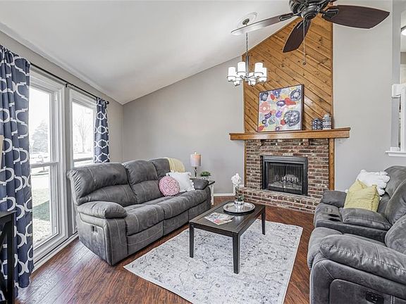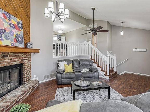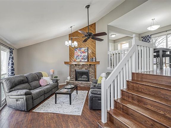 Beautiful and well-maintained F/B Split in Olathe! Wonderful open floor plan. Spacious great room with a corner fireplace and vaulted ceiling. Charming kitchen with white cabinets, stainless appliances, and breakfast area overlooking the backyard. The primary suite has a private bath and two closets. Updated hall bath. New furnace and A/C. Finished walkout lower level with family room, plus sub-basement for storage. Enjoy entertaining on the large patio and two-tier deck. Great location close to parks, schools, and shopping.