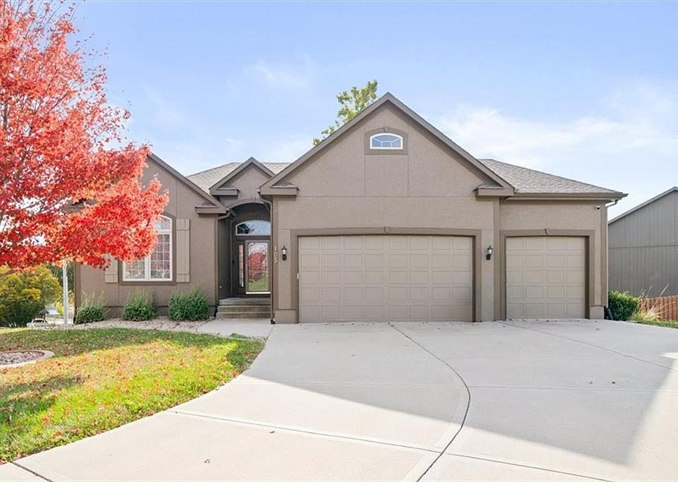 Welcome home to 105 N Eastglen! Reverse 1.5 Story located in a quiet cul-de-sac of the coveted Eagle Glen Subdivision. Open concept on main level with lofty ceilings and lots of natural light. Kitchen features large island, walk-in pantry, and stainless steel appliances. Main level primary with private full bathroom and walk-in closet. Walk-out basement with large rec area, two bedrooms, and full bathroom. AMAZING covered deck for entertaining. Spacious three car garage with large driveway. Close to highways and shopping. Raymore school district.