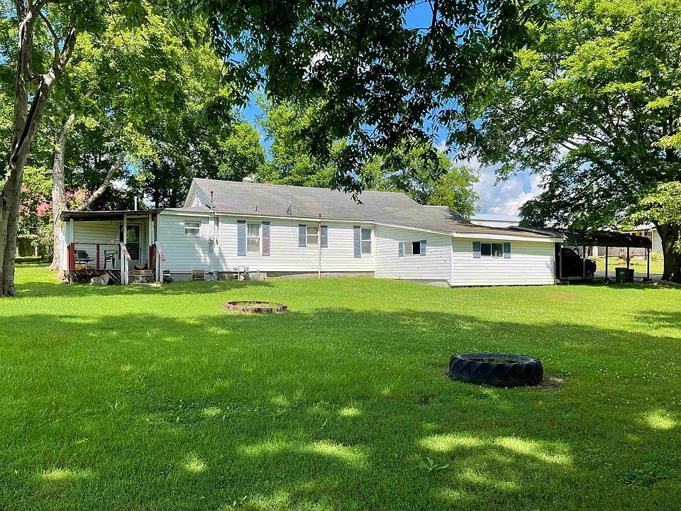 3 bedroom, 2 bath home on 3 lots! The home has newer carpet, central heat and air, and a large utility room! There is a portable carport, an attached lean-to for storage or a workshop, and a storage building. There is a front porch, as well as a small deck off of the side of the home. The yard is very large with several, beautiful shade trees.