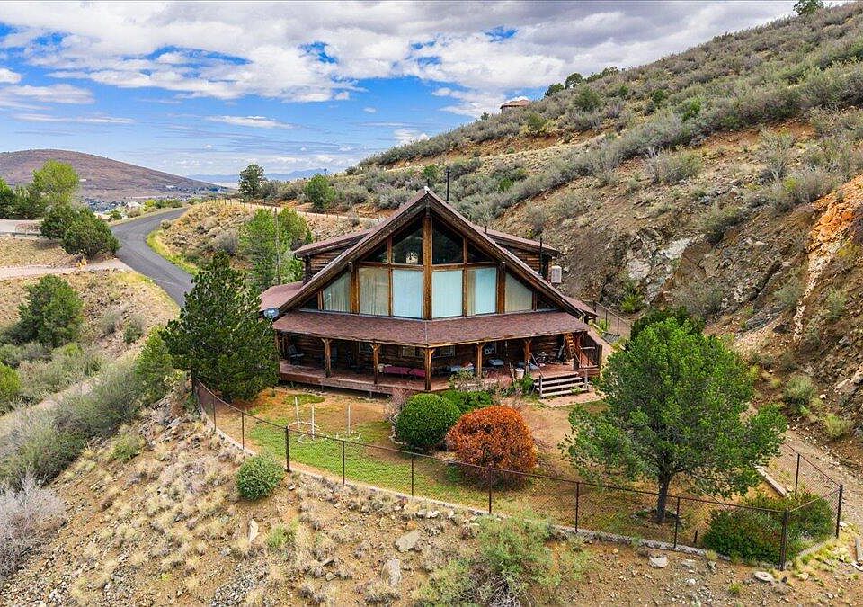 Beautiful custom-built log home with incredible mountain & city views! Conveniently located between Prescott & Prescott Valley, this 3 bed, 3 bath home features quality construction throughout, vaulted ceilings (up to 24'), wood shiplap interior walls, solid wood doors, and an open-concept design. Spacious loft area-pool table conveys. Nearly 2 acres with tons of storage and an oversized 2-car garage (appx. 30x24), furnishings negotiable for a turnkey option. A rare blend of rustic charm, space and custom craftsmanship!