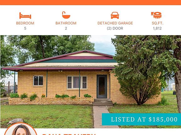 Welcome to this charming 5-bedroom, 2-bath brick home in Lakin! Buyers will love the 40x31 shop that accommodates up to 4 vehicles, or store and work on your farm equipment--this shop will easily meet all of your needs. This property not only offers a spacious layout and room for a growing family, but also includes a dedicated office space with its own outside entrance, perfect for those who work from home or need a private workspace. The convenient layout is ideal for entertaining guests, while the kitchen features ample cabinetry and plenty of room for all the cooks in the family. The bedrooms offer versatility for various needs, and the spacious yard provides ample space for outdoor activities. Located in a quiet neighborhood, this home offers comfort, functionality, and the added convenience of a dedicated office space. Call Dana Trahern at NextHome for your showing today-620.353.9537