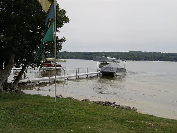 Intermediate Lake at its best! This spacious & immaculate Cape Cod home is complemented by spectacular hard sand bottom frontage on the East side of the widest part of the lake with stunning sunset lake views! Bonus newer 64x30 pole barn across street included in this sweet package. Features include open plan w/modern kitchen w/bar, spacious living room, bonus billiard game room, master suite, cathedral ceilings, attached garage, new top of the line full house generator, newer roof, wood stove insert, covered deck overlooking lake, firepit, modern bathrooms, lots of ceramic tile, landscaped lot, and so much more! This one has it all!