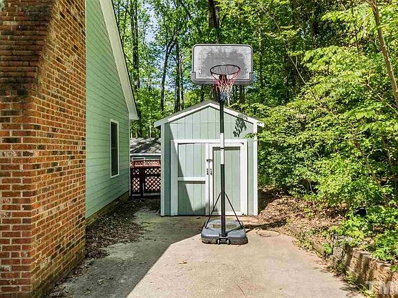 Hard to find Cary location under $300k.... Beautiful just under half acre lot on cul de sac. Home freshly painted interior and exterior. Private wooded backyard that backs to Cary Greenway.... short walk to Bond Park!.4 bedroom home features 2 bedrooms on 1st floor,large family room with fireplace,separate dining room... 2 storage buildings,walk in crawl space,large deck.