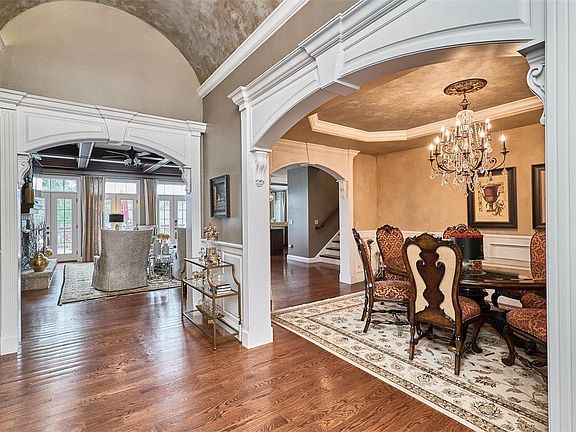 CUSTOM BUILT 1.5 STY WITH OVER 7000 SQUARE FEET OF FINISHED LIVING ON .937 ACRE LOT! Circle drive added for convenience and ample parking. Large, level, spacious lot! This property is loaded with millwork, arched openings, beamed ceilings and upgraded finishes. Gourmet kitchen with Dacor gas range and built-in refrigerator, double Wolf ovens and wine refrig. Master suite has two designer closets, front office/library boosts 20'ceilings and a wall of bookcases, gorgeous stone fireplaces, upper level has four bedrooms and a craft room which can be additional bedroom, finished lower level includes two bedrooms, large theater room, walk-behind bar with two mini refrigerators and dishwasher, gaming area and separate lounge space and walks out to patio. Three zoned hvac, two tankless water heaters, sprinkler and security systems and a large front porch with seating. Great location convenient to hwys, hospitals, shopping, schools and more! GORGEOUS SUNSETS FROM THE DECK!