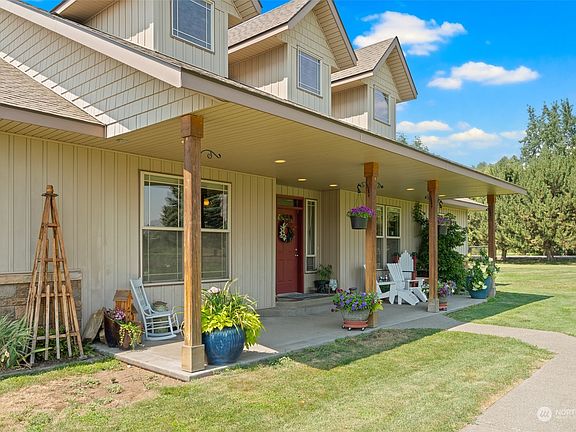Discover this 2,653 sq. ft. home in the desirable Grasslands neighborhood, featuring an open floor plan with vaulted ceilings throughout the great room, kitchen, and dining area. The kitchen is thoughtfully designed with an large island, locally made alder cabinets, granite tile countertops, and a gas stove. This home offers 4 spacious bedrooms, 3 baths, an office and a utility room, providing ample space for comfortable living. Situated on a 1.61-acre lot, the property boasts a fully landscaped yard, 2 covered patios, and underground sprinklers with irrigation. Additional amenities include an oversized 2-car attached garage and a 20x30 storage building with cement floor.