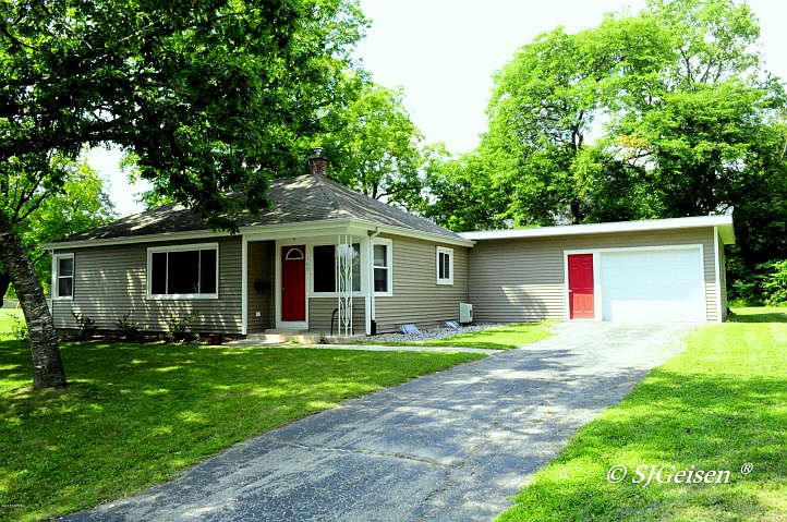 Curbside view looks small but this corner ranch home is very impressive! Now available is this 3 bedroom, 2 bath renovated ranch offering 1,230sq' on the main level including: front living area, beautiful light maple kitchen, very spacious formal dining room overlooking back yard, mudroom off 1 car attached garage with walk-in storage closet plus approximately 450sq' finished in the lower level offering a large family/rec room in additional to the storage/mechanical room with laundry. Other amenities: vinyl siding, replacement windows, newer furnace and roof shingles, central air, double corner lot and walking distance to school, downtown, parks, walking trail and the Flat River access. One of cleanest ranch homes under $90k you will find! Immediate Possession - Close & Keys are Yours!!