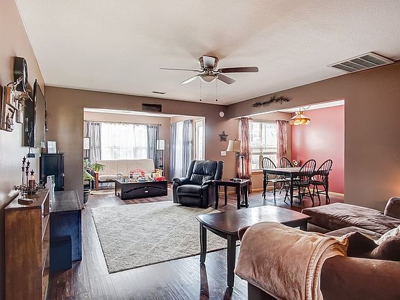 Approximately 1,400 sq ft offered at this beautiful ranch home. Greeting you with an open concept and split bedroom floor plan. Stunning laminate flooring throughout the main living areas including the sitting room in the back overlooking the fenced in back yard. Enjoy entertaining or just relaxing in the spacious living room with nearby dining area and kitchen with ample cabinetry and counter space. Laundry room located just off the garage and kitchen with plenty of space for supplies. On one side of the home, you'll find the master suite with private bath and walk in closet. Opposite side are the additional bedrooms with full bath. Additional amenities include floored attic space for storage, backyard patio & shed and more!
