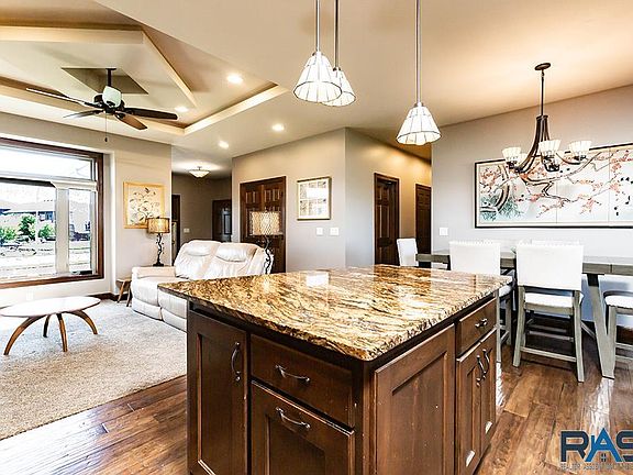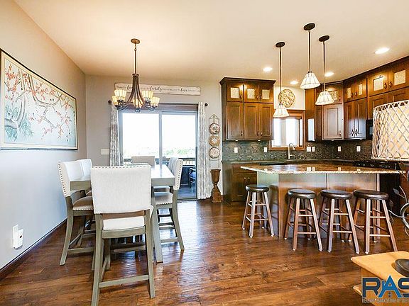 Extraordinary Layout In This Exquisite, Custom Ranch Home With No Backyard Neighbors. This 4 bedroom, 3 bath ranch walkout is just minutes from Sioux Falls. Dazzling, open main level highlighting a stunning kitchen w/ a granite center isl&, beautiful backsplash, plenty of gorgeous, custom cherry cabinets & hand scraped wood floors. Significantly sized dining room w/ sliders to the impressive deck & a beautiful living room w/ built-ins & custom tray ceiling. The master suite is something out of a dream, w/ walk-in closets perfect for all your needs & a ¾ bath w/ tiled shower, vessel sink & tile floors to finish it off. Another large bed, full bath, & main floor laundry finish off the stunning main floor. The lower level hosts an immense walkout family room w/ a gas fireplace & built-ins, full bath, two beds, & hobby room. The list goes on w/ a finished 3 stall garage, sprinkler system, invisible pet fence, picturesque landscaping & steps away from Fred Assam Elementary & Park.