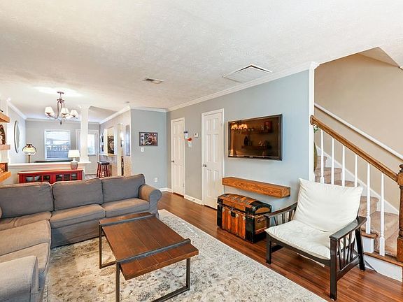 Move in ready and neutral paint colors throughout. Hardwood floors on main level and newer carpet upstairs. Kitchen has breakfast bar and a separate breakfast area. All black appliances and stackable washer/dryer in the kitchen. Powder room downstairs has a barnwood accent wall. Both bathrooms have tiled floors and a tiled baths. Master bedroom has two spacious closets. Back patio is fenced in and great area for grilling out with a space for a table and chairs. 2 unassigned parking spaces right at your back door. Minutes to Historic Roswell,shopping,GA 400 and parks