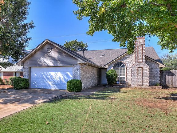 Right in the heart of Edmond, this conveniently located 3 bedroom 2 bathroom home also has a 2 car garage with a brand new garage door. Once you walk in the home, you'll be in the living room with tall vaulted ceilings, a beautiful brick fireplace & built in bookshelf. The primary bathroom has a walk in shower, a large soaking tub, double vanities & granite countertops. The bedrooms all have new carpet, & the split floor plan keeps the primary suite very private. In the heart of the home, you'll find the kitchen with granite countertops, an island & dining area with room for a large kitchen table. The fully fenced backyard has an extra large covered patio with access from the kitchen and from the primary bedroom, so you can enjoy your morning coffee outside. Come visit & make a smart investment.