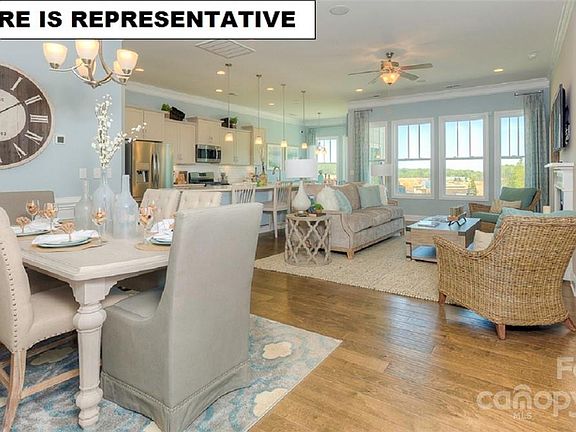 Stunning Azalea plan! Large open concept living with spectacular kitchen island. This plan features 10 ft ceilings, crown molding throughout home, wainscoting in dining area and foyer. The primary bedroom has a tray ceiling, walk in shower with glass door, raised height double vanity with quartz counters. Gas fireplace in living room. RevWood floors in the entry hall, great room, dining and kitchen area. Hardie Board siding and stone work on front of home. Covered back porch. Brookside is conveniently located near downtown Troutman, Lake Norman State Park and all the shopping and dining of Mooresville. The community includes a dog park, walking trails and a bocce court. On Demand Tankless Water heater and "Home is Connected" Package is included.