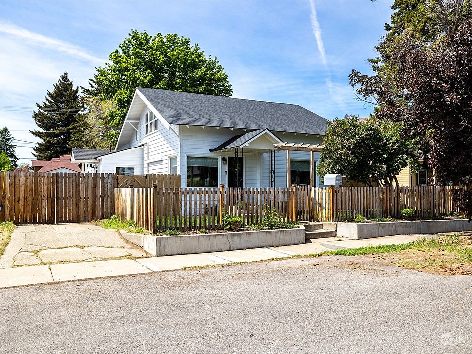 Craftsman charmer close to town and schools! This home was updated only a few years ago with new roof, flooring, electrical, siding, and hot water tank! The kitchen was also updated, with new cabinets and appliances- and is complete with cozy breakfast nook and walk-in pantry. The primary is on the main floor with a 3/4 bath ensuite. Upstairs are two more bedrooms plus bonus flex space. Side door off of the laundry leads to the fenced backyard, which is very private and features a covered patio area and alley access. Detached 2 car garage & storage shed offer lots of parking and storage. Mini splits for efficient heating and cooling, lots of natural light, great walkable location in town- this home is waiting for you!