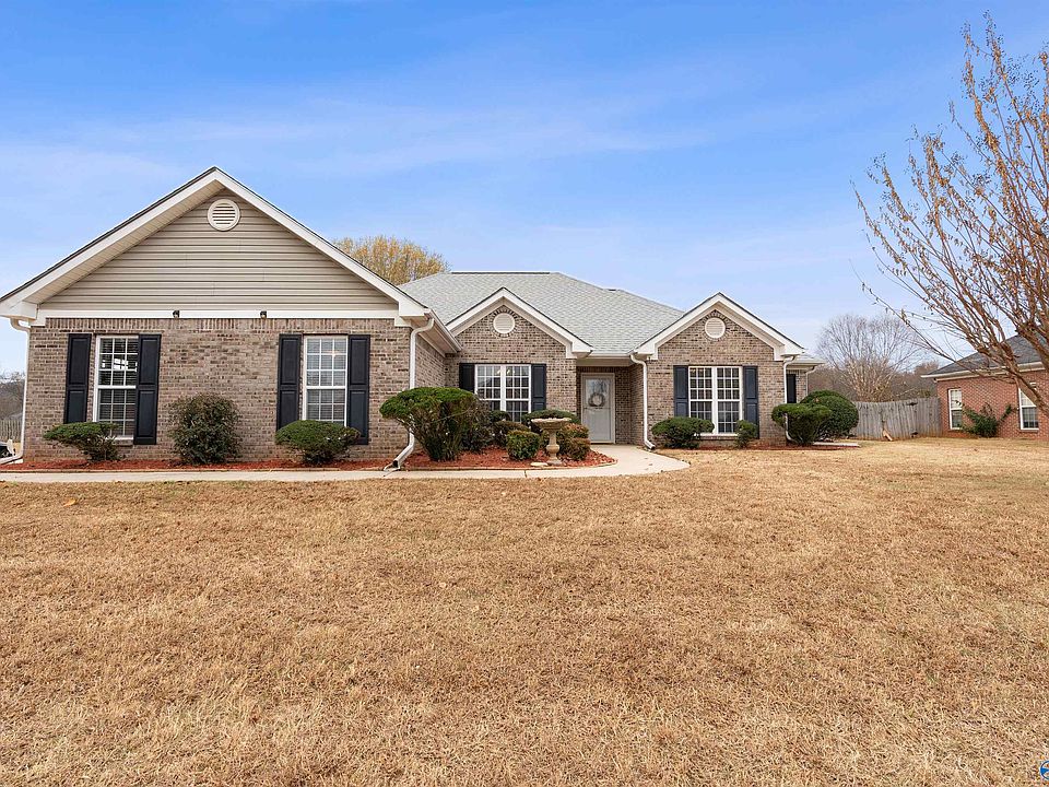 Welcome to this stunning 3-bedroom, 2-bath, full brick home on a corner lot. As you enter, you'll be greeted by beautiful wood floors in the foyer & dining room, adding elegance to the space. The large family room features an cozy gas fireplace, perfect for chilly evenings. The soaring tray ceilings throughout the home create an open and airy atmosphere. The primary suite includes an office space & large walk-in closet.The primary bathroom is a true oasis with double vanities featuring elevated vessel sinks. The beautiful landscape will be admired from the screened in porch with tile floors & ceiling fans. This home offers both comfort & style, making it the perfect place to call home.