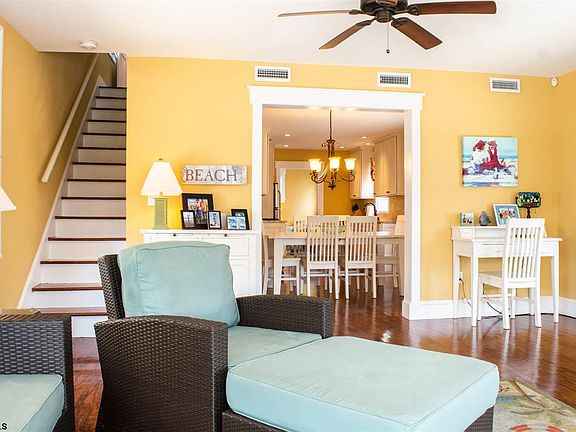 Island living at its best! Most desirable street in Ventnor, short 2 blocks walk to beach and Boardwalk. Quiet street with owner occupied homes. House was fully renovated 6 years ago, all new electric, full PEX plumbing with manifold, new gas lines, tankless water heater, and high-end efficient dual zone HVAC, and keyless entry doors. 4 bedrooms, 1 office/5th bedroom on first floor, 1.5 baths, large walk-in oversize outside private shower. New hardwood floors throughout. Open concept. First floor with spacious family room dining room, new kitchen with recessed lighting, stainless appliance package, and end-end Woodmode cabinets. Great for large get-togethers. Separate ice maker with plumbed water line, laundry room with high-end front load GE washer/dryer. Second floor master bedroom opens up to private deck, giving you great views of Ventnor. Attached garage with keyless entry, ample storage for beach chairs, carts, bikes, and toys. Driveway for 1 car. Perfect home!